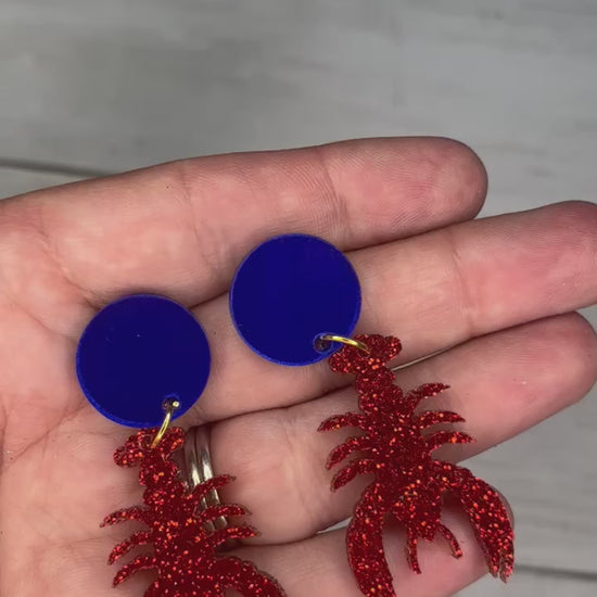 Simple, lightweight and modern earrings your ears will love! The acrylic connectors are made of blue mirrored acrylic and give a fun, summery vibe that goes great with the red glitter acrylic lobsters on bottom. Earrings have nickel free hooks and jump rings. These earrings are so lightweight and a perfect way to add a pop of color to your outfit!!